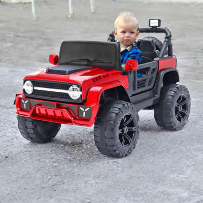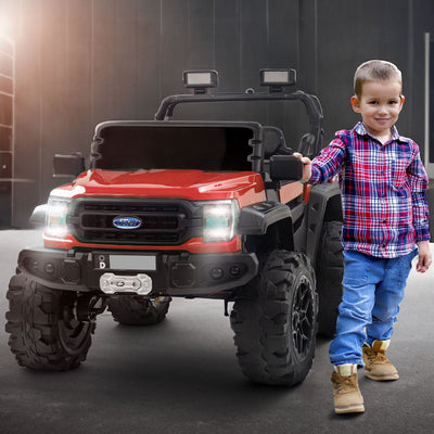 Baby Moo Ford 4X4 Battery Operated Electric Ride On Jeep Rechargeable 12V Battery With Remote Control LED Lights, Music & USB Port - Red