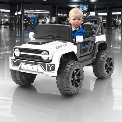 Baby Moo Ford 4X4 Battery Operated Electric Ride On Jeep Rechargeable 12V Battery With Remote Control LED Lights, Music & USB Port - White