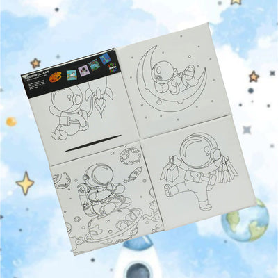 ZORSE space 4pc eight shades of Expression wooden frame canvas painting set 15 x 15cm