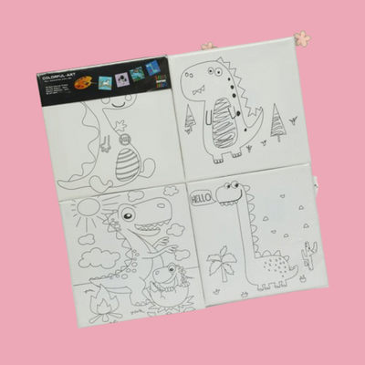 ZORSE Dino 4pc eight shades of Expression wooden frame canvas painting set 15 x 15cm