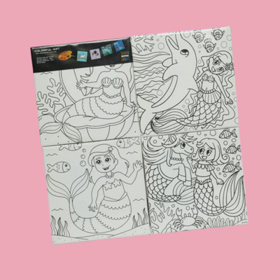 ZORSE Mermaid 4pc eight shades of Expression wooden frame canvas painting set 15 x 15cm