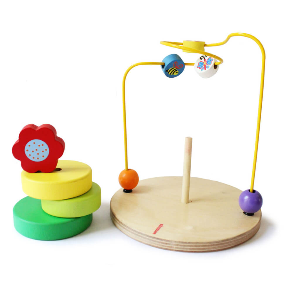 This lovely garden-themed activity set is the perfect stack + maze toy for your little one! Build flowers and buzz around like bees as you play along.