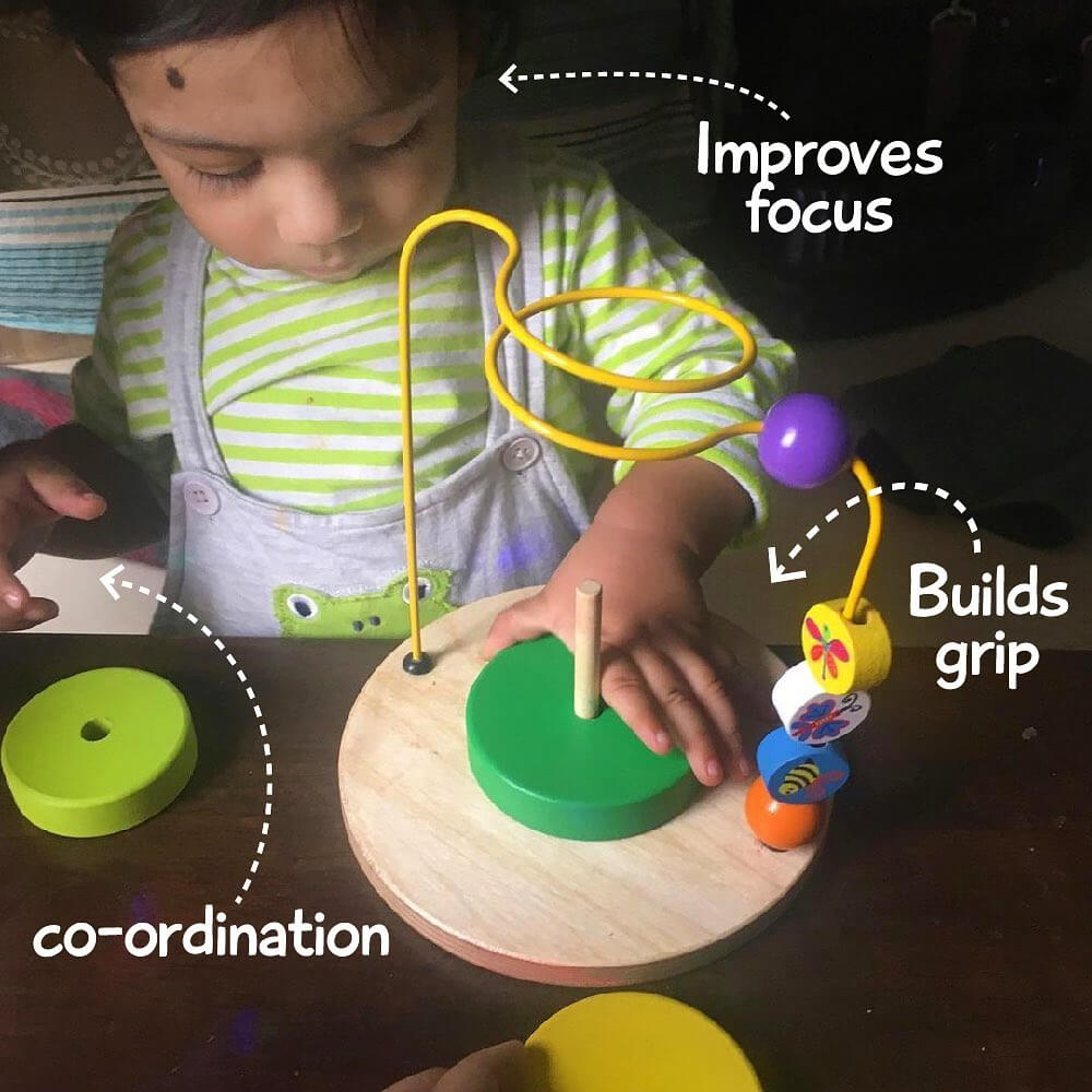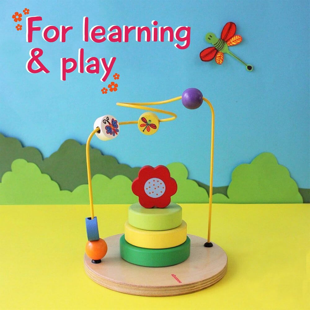 Buzz around the garden by moving the beads across the maze from one end to the other.
