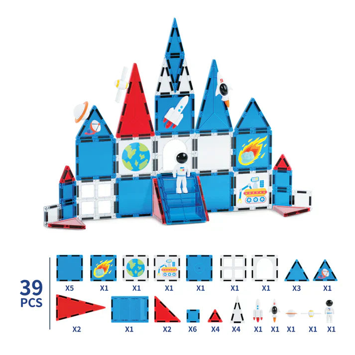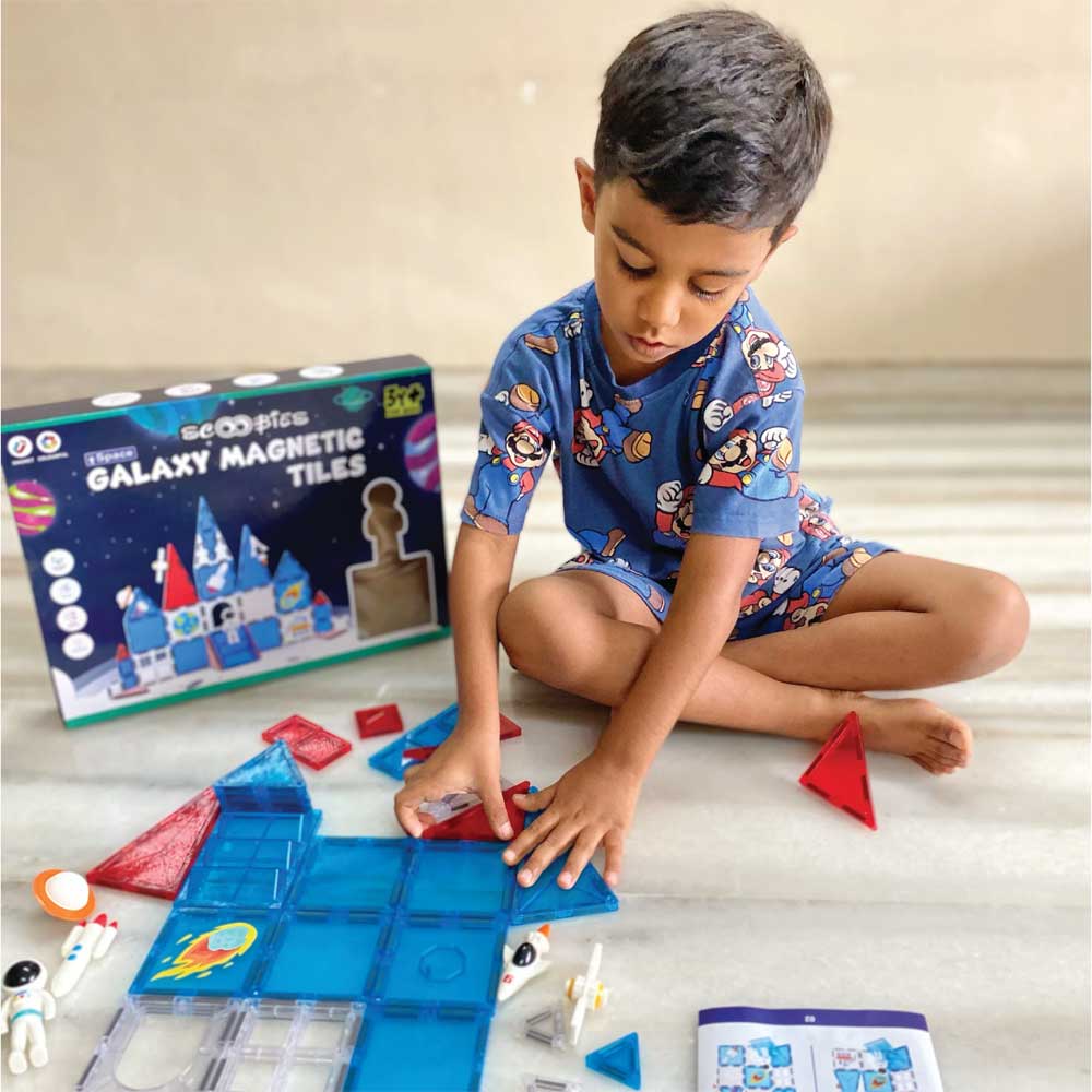 Scoobies Galaxy Magnetic Tiles! This 39-piece space-inspired set features vibrant, translucent tiles perfect for STEM learning and imaginative play. Safe, durable, and compatible with other magnetic tile sets, it’s ideal for kids 3+ and fun for the whole family!