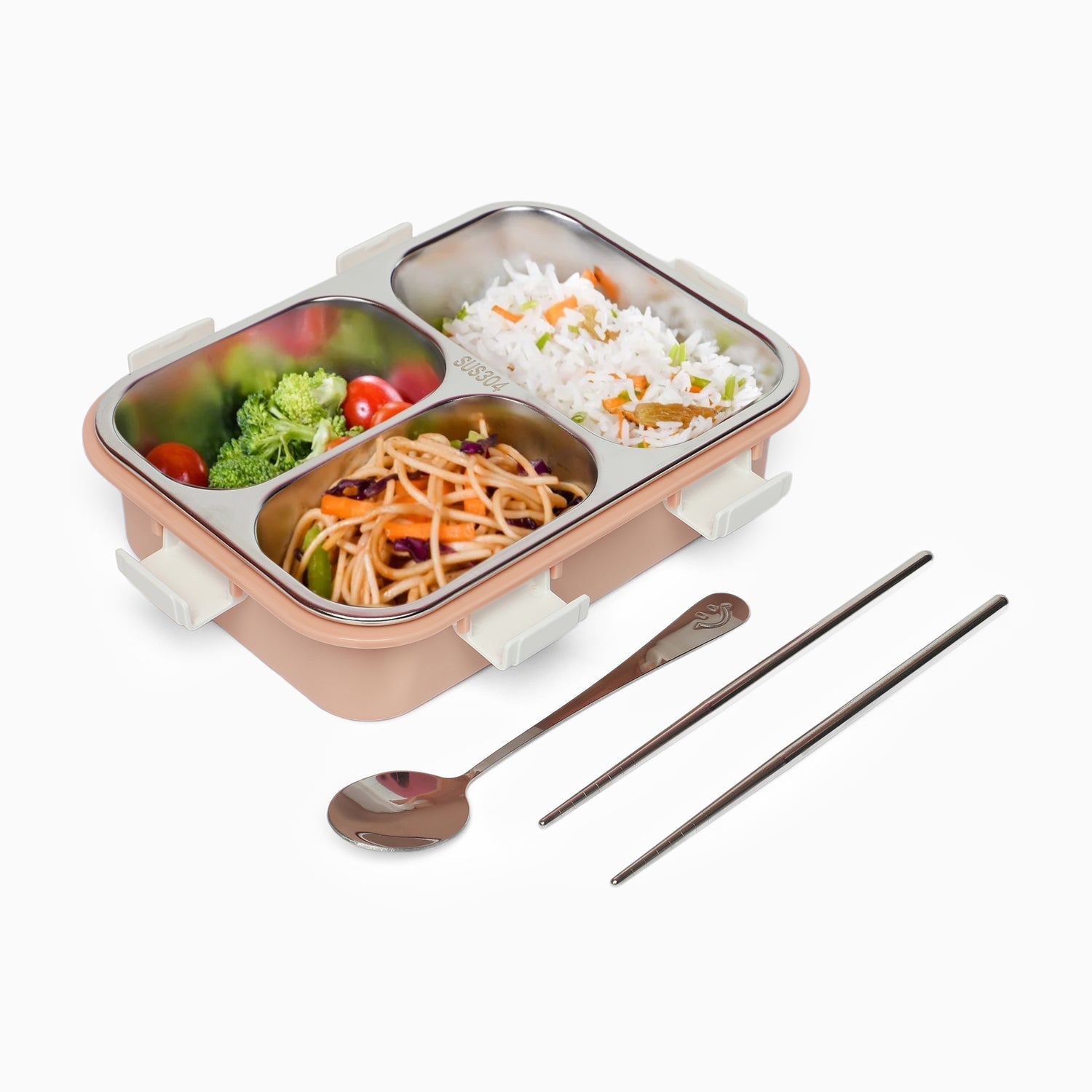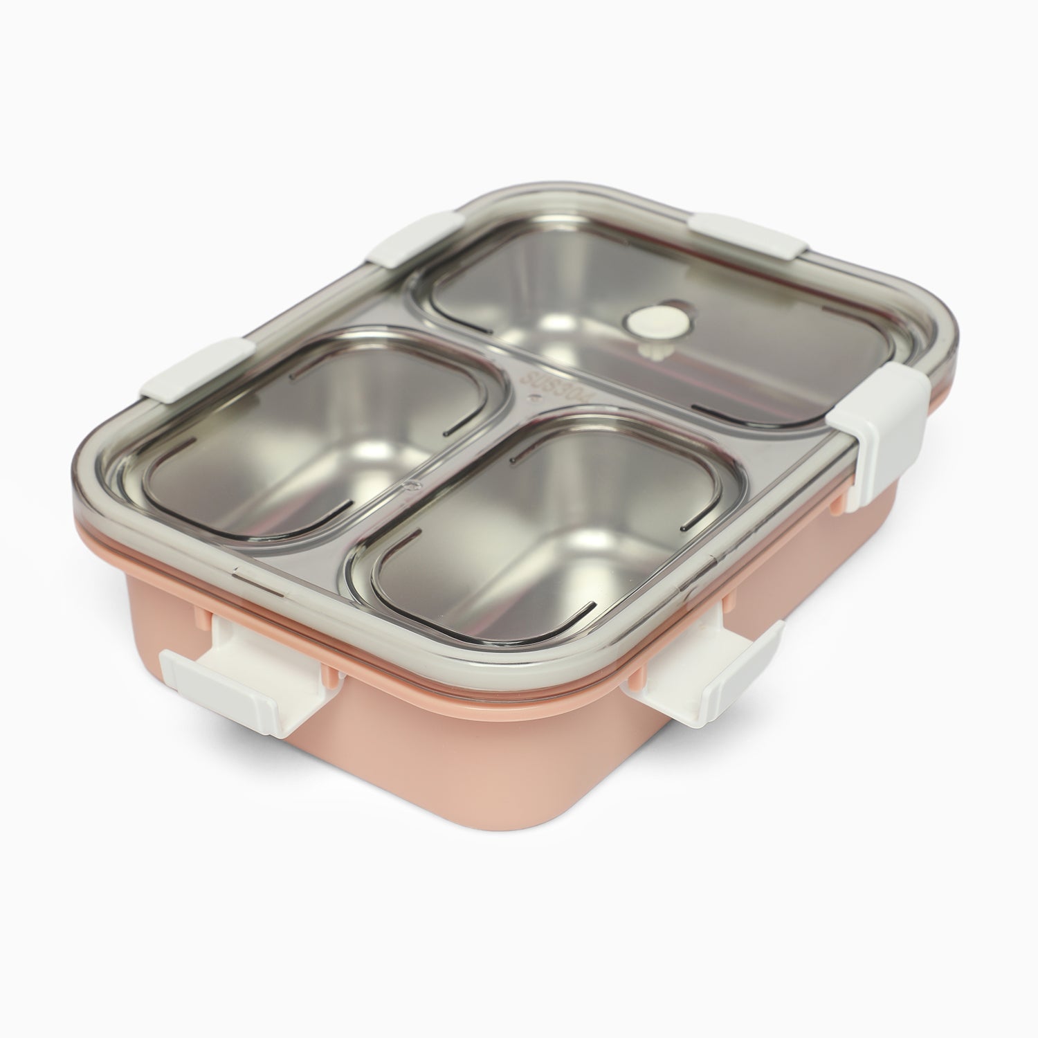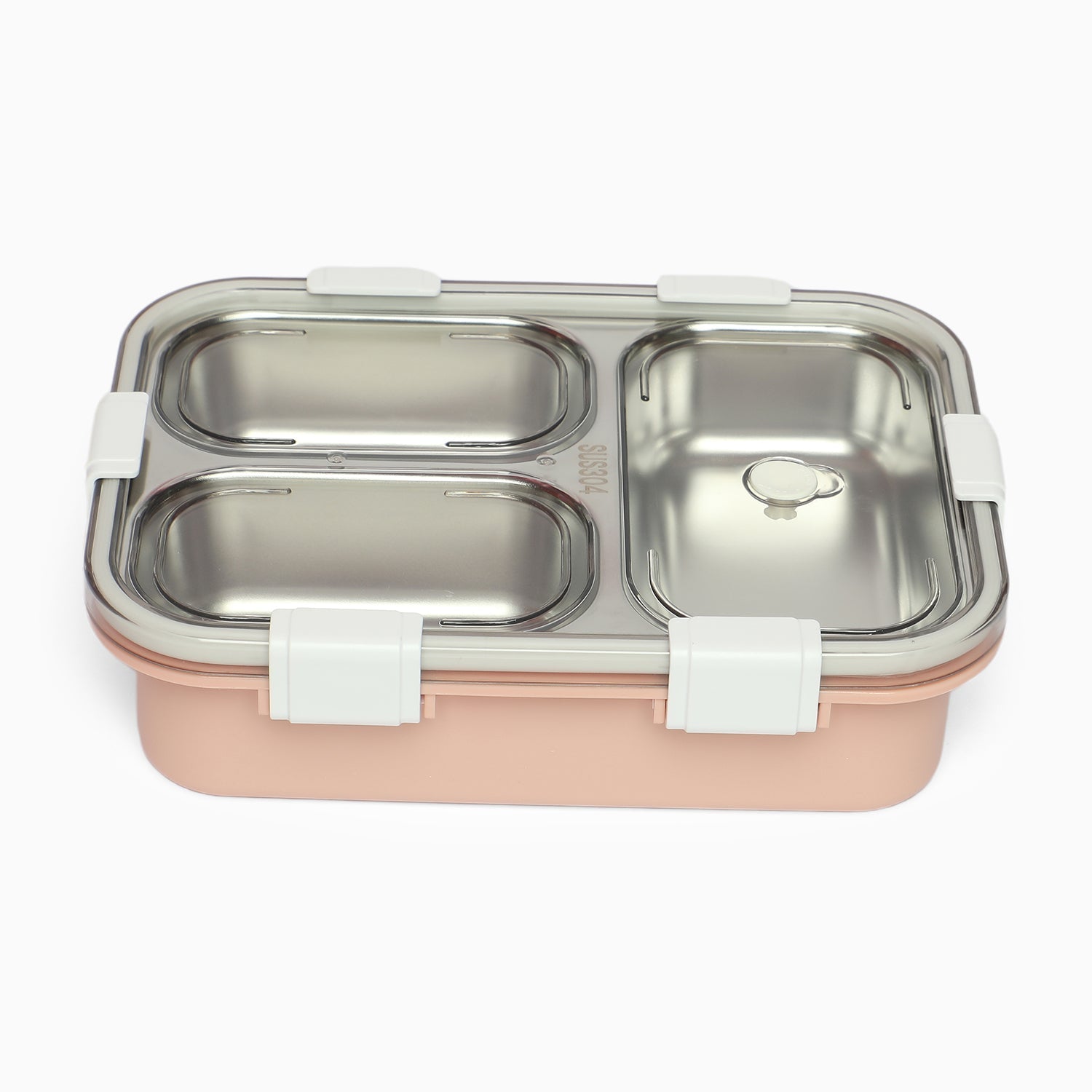 Discover the 750 ML Triple Grid Insulated Steel Lunch Box in peach. Perfect for kids' meals, it's durable and keeps food fresh. Order now for hassle-free lunches!