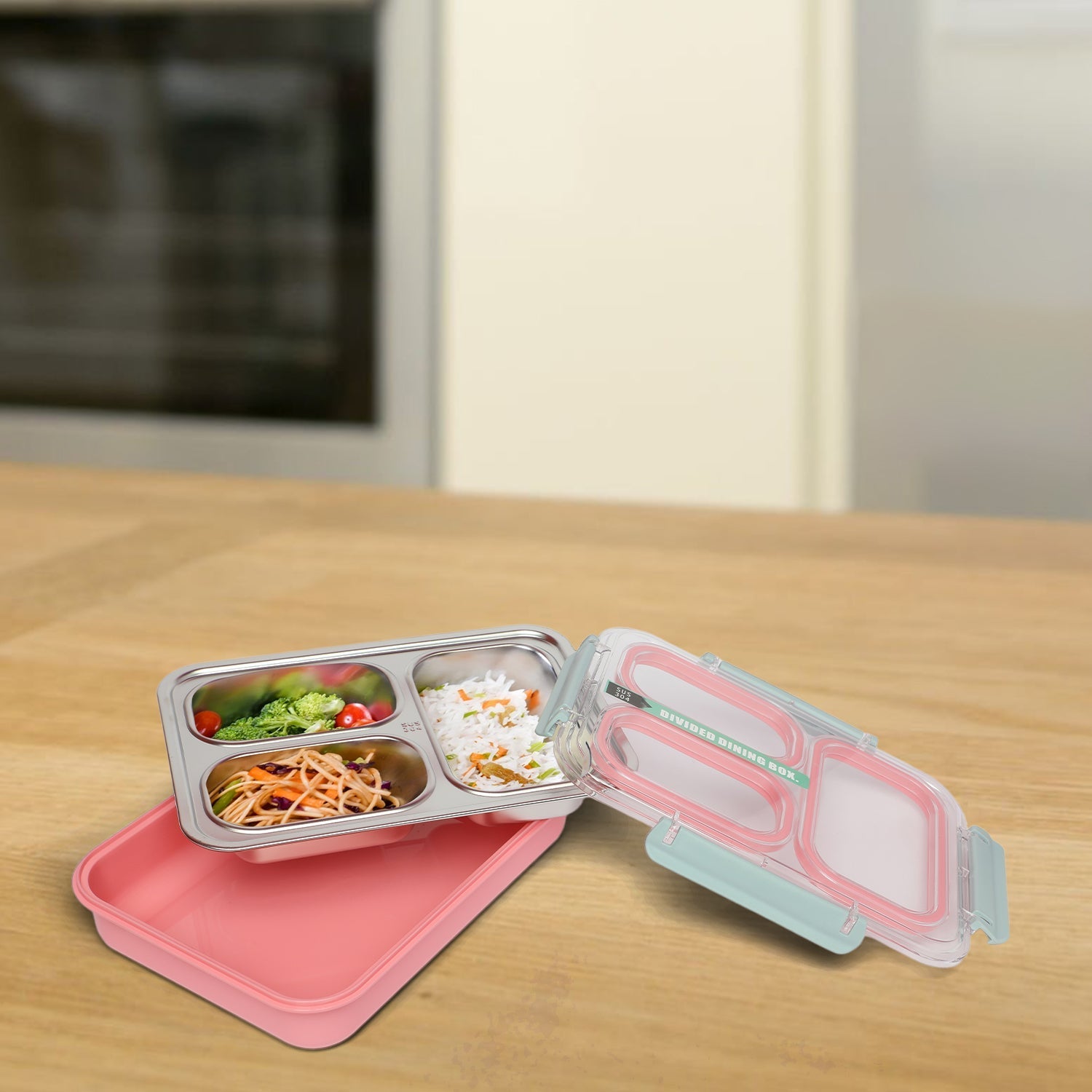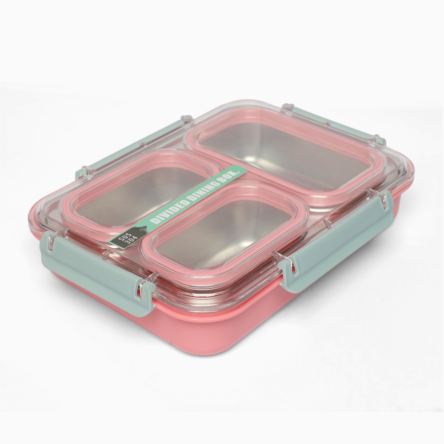 Upgrade your lunch game with our Stainless Steel 3-Compartment 1.2L Lunch Boxes. Made with durable materials and eco-friendly design, this lunch box is perfect for on-the-go meals. Pack your lunch with confidence and convenience, while reducing waste. Available in pink.