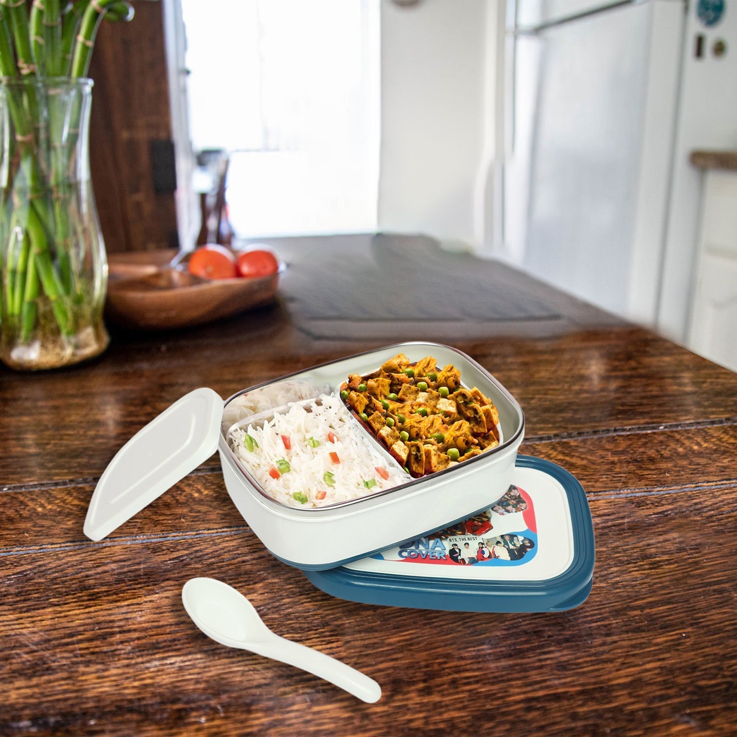 The BTS Stainless Steel 2 Compartment Lunch Box is a durable and versatile choice for your meal prep needs. Made of high-quality stainless steel, it offers a sleek and modern design while also being resistant to corrosion and stains. With two compartments, it allows for convenient and organized packing of your favorite dishes. Enjoy your meals on the go with this stylish and practical lunch box.