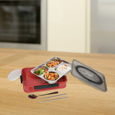 Food stainless steel 4 compartment lunchbox-1000 ml (red)