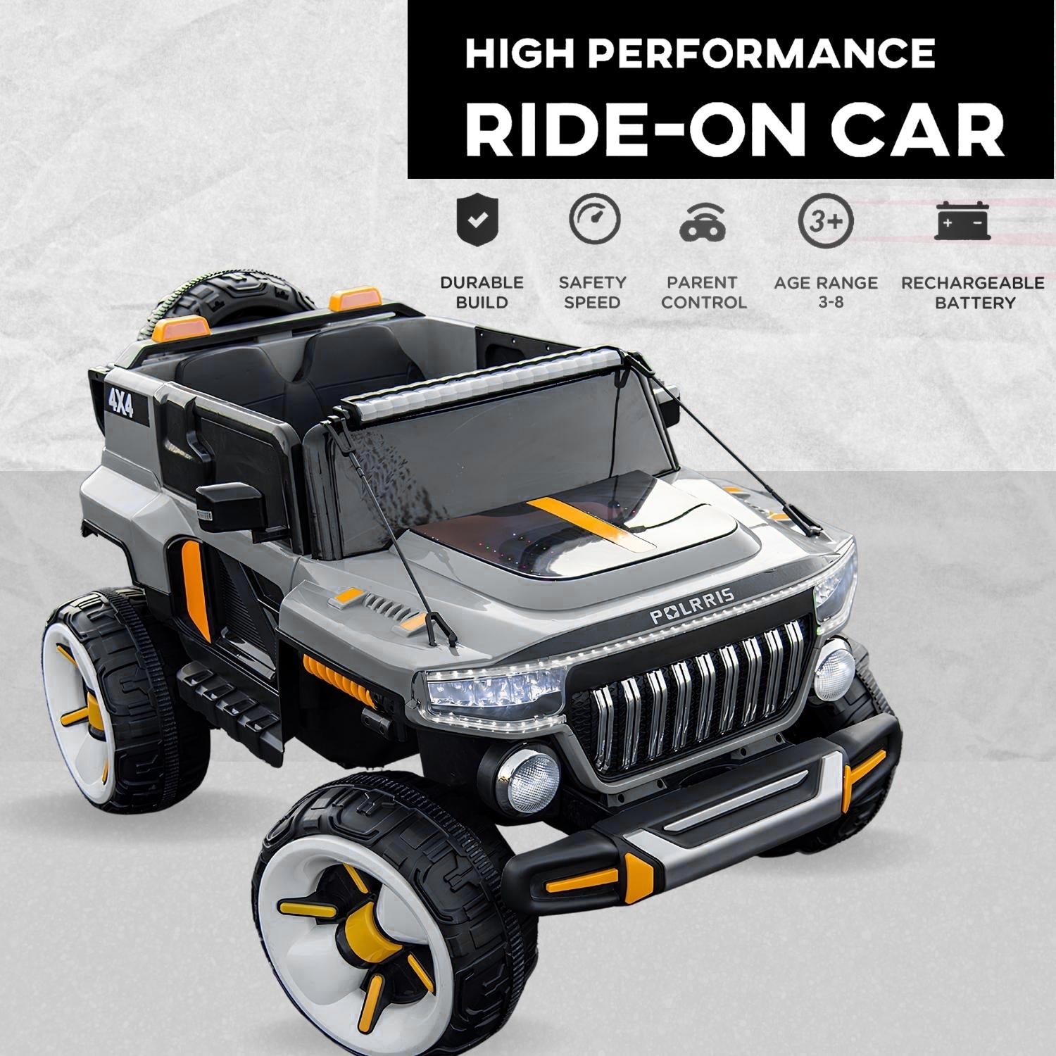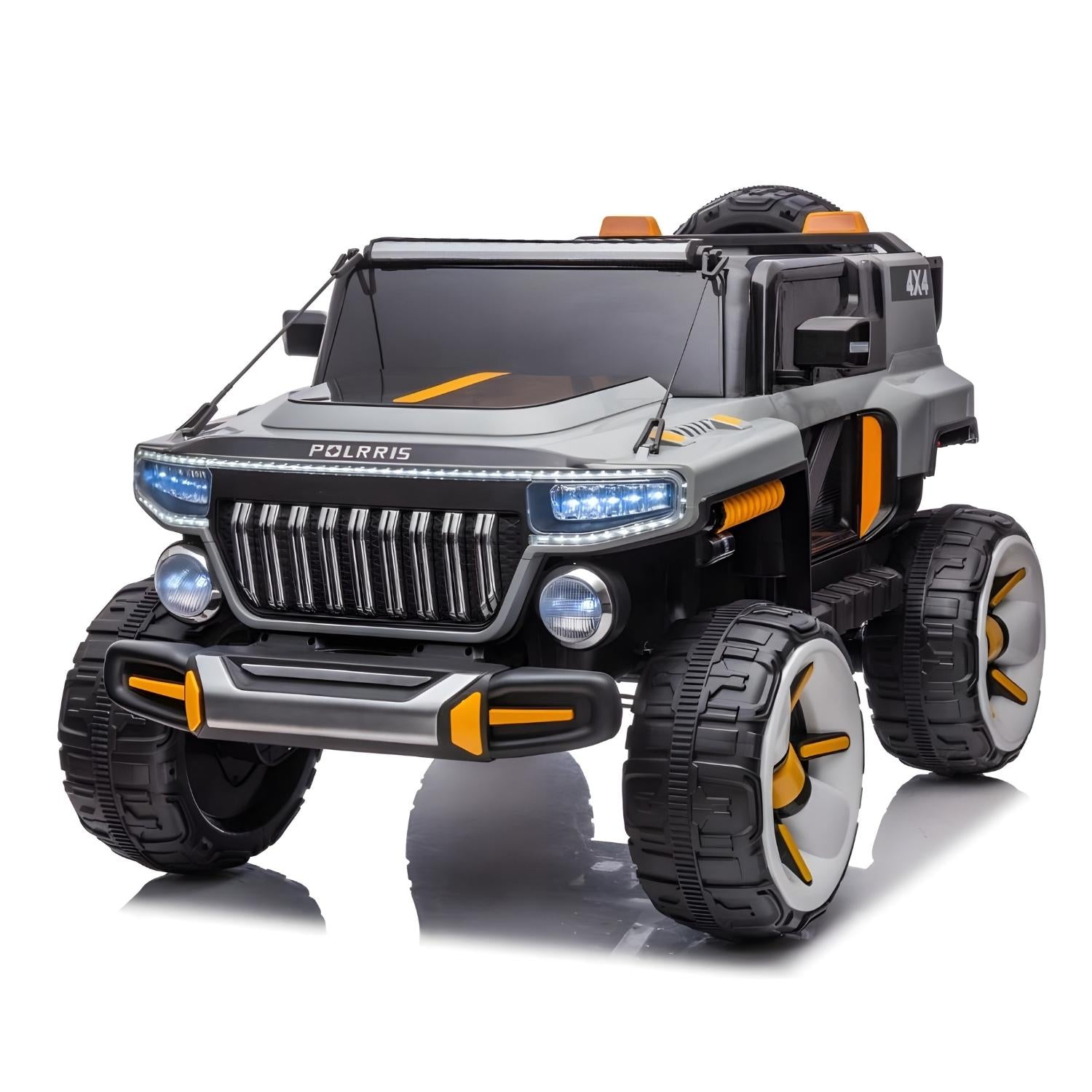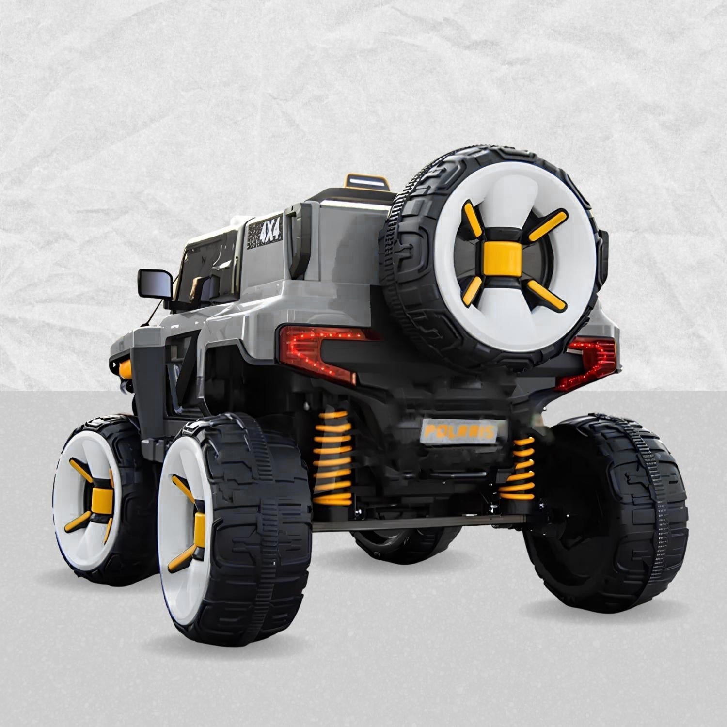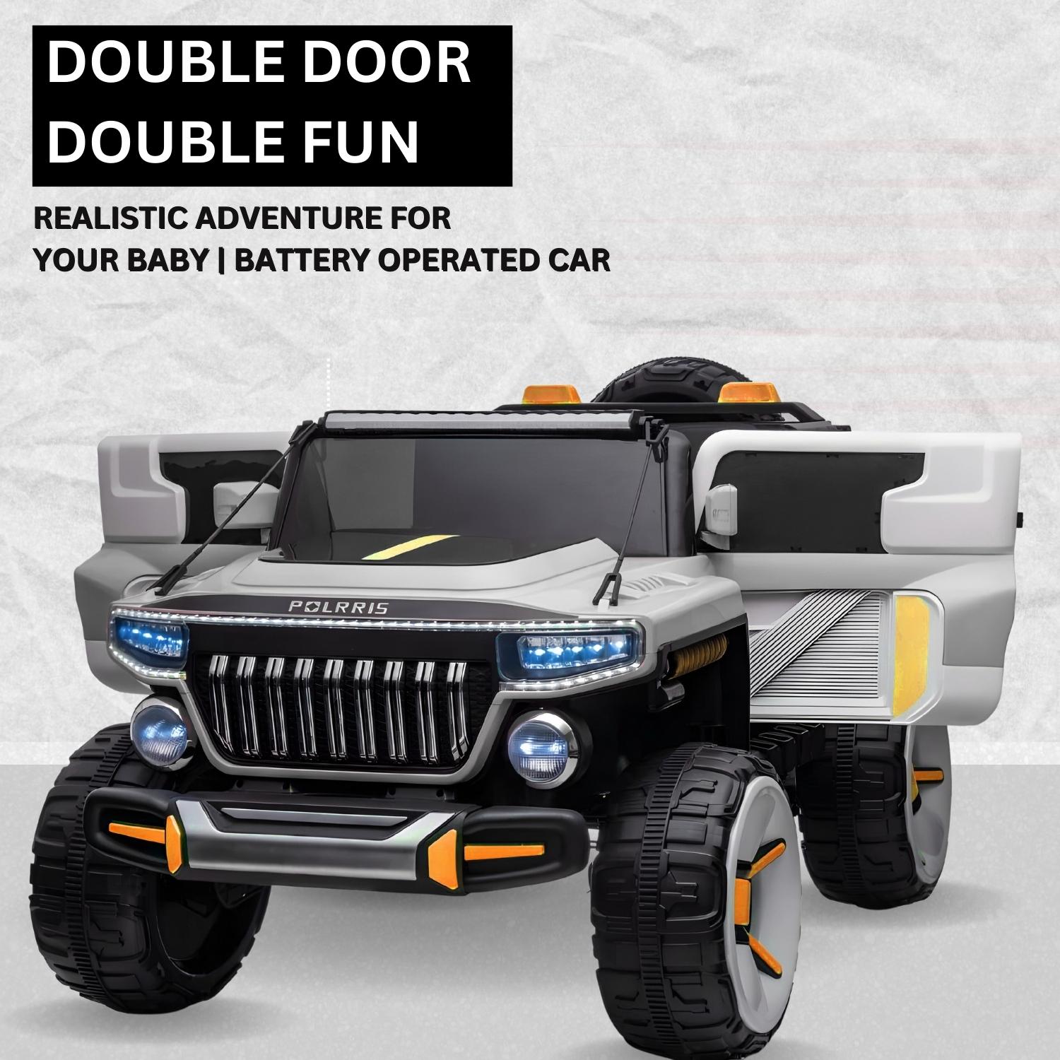 Baby Moo Electric Ride-on Jeep for Kids With Rechargeable 12V Battery, LED Lights, Music and USB Port Remote Control Double Seat - Grey