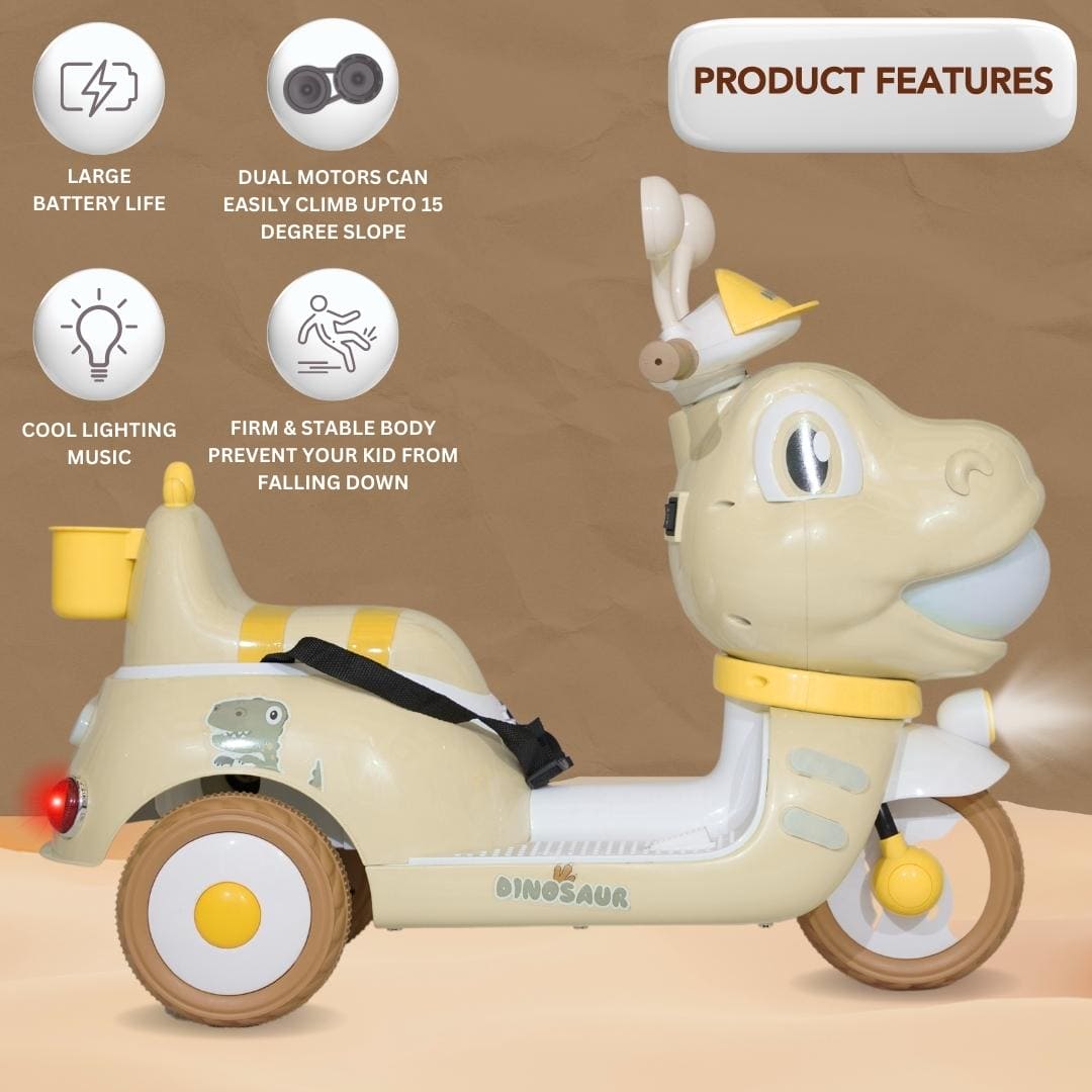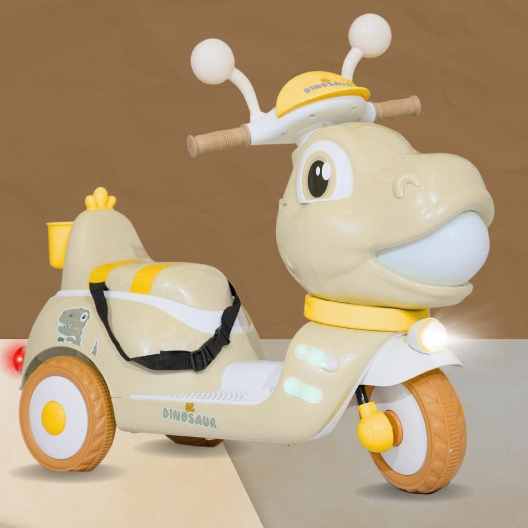 Baby Moo Whimsical Cartoon Kids Electric 3-Wheel Motorcycle Scooter Rechargeable Battery-Powered with Music & Lights Toddler Ride-On Bike Toy for Imaginative Adventures - Off White