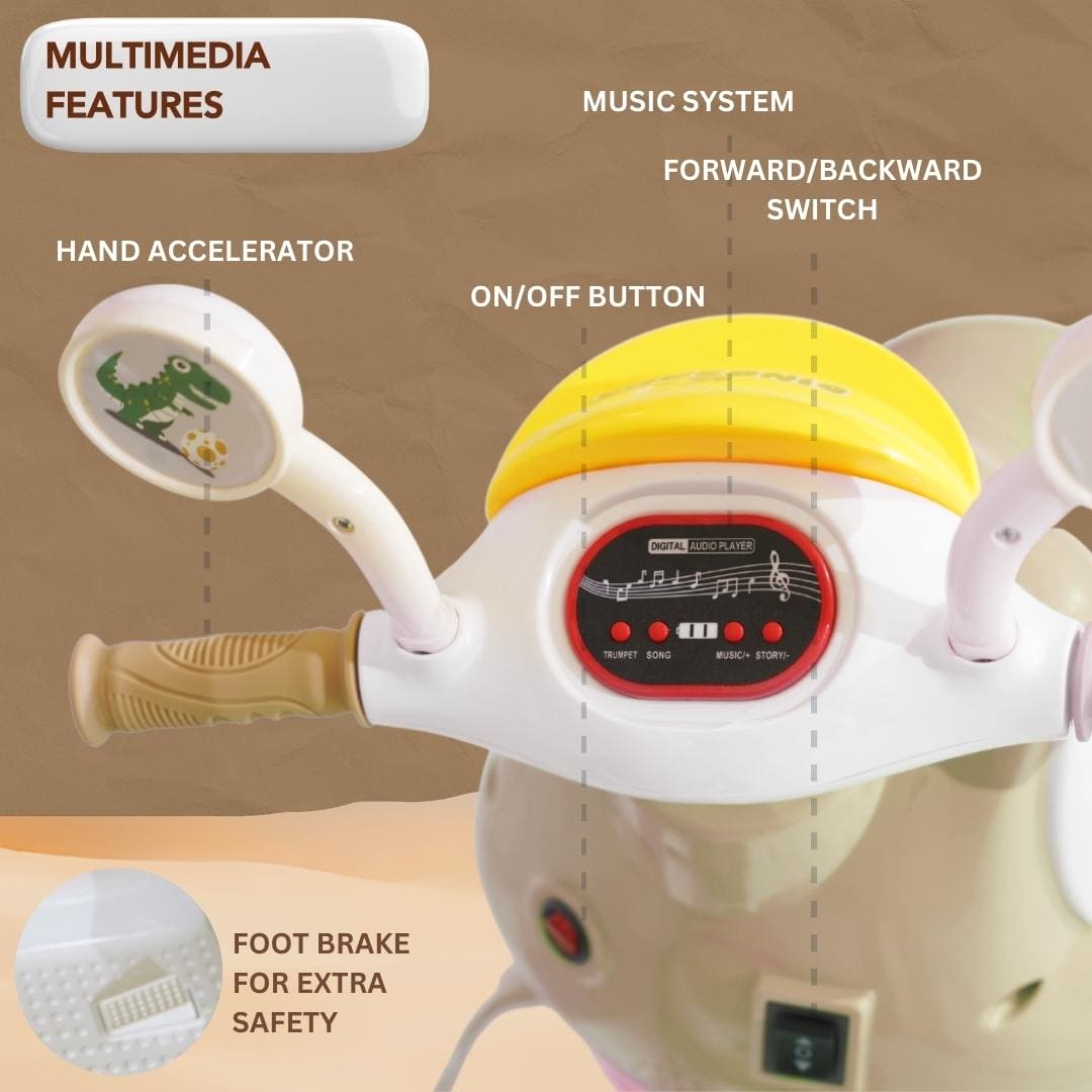 > πŸš— Melodies and Illumination: The ride becomes a symphony of fun with the inbuilt music and lights. Your child can enjoy their favorite tunes while cruising in style. The captivating lights add an element of wonder, transforming every ride into a magical experience.