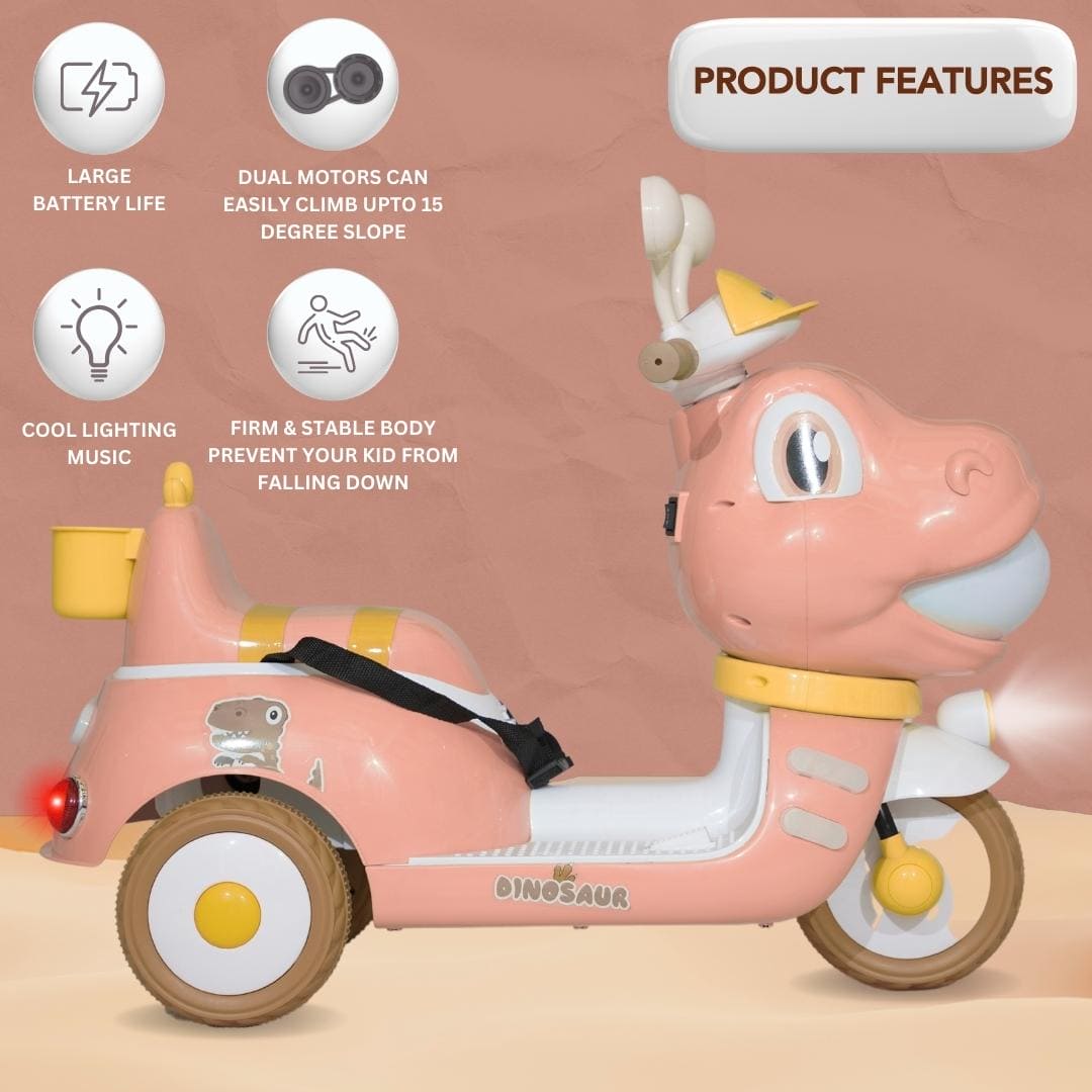 Baby Moo Whimsical Cartoon Kids Electric 3-Wheel Motorcycle Scooter Rechargeable Battery-Powered with Music & Lights Toddler Ride-On Bike Toy for Imaginative Adventures - Pink