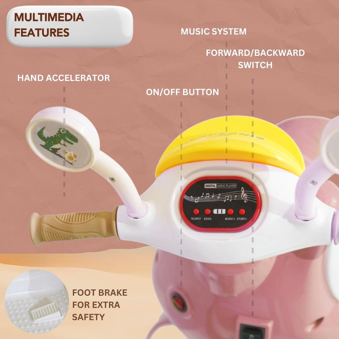 > πŸš— Melodies and Illumination: The ride becomes a symphony of fun with the inbuilt music and lights. Your child can enjoy their favorite tunes while cruising in style. The captivating lights add an element of wonder, transforming every ride into a magical experience.