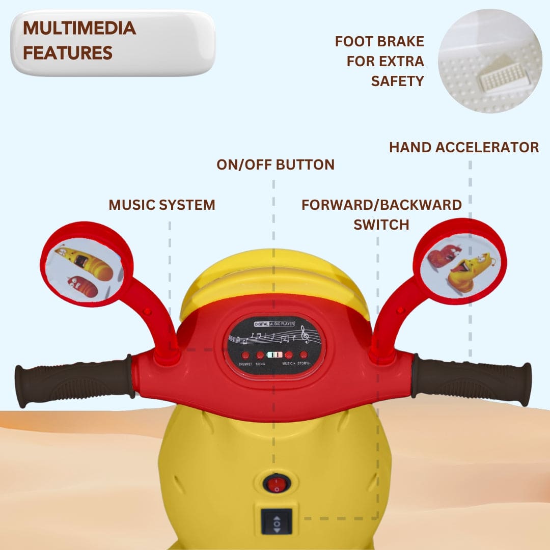 Baby Moo Whimsical Cartoon Kids Electric 3-Wheel Ride-On Bike Motorcycle Scooter Rechargeable Battery-Powered with Music & Lights - Yellow