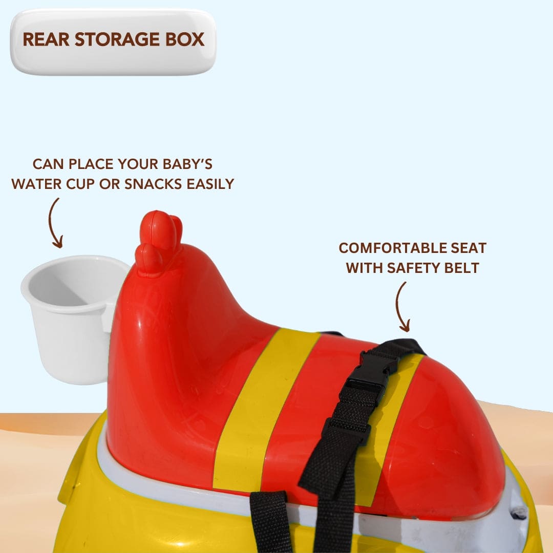 > πŸš— Melodies and Illumination: The ride becomes a symphony of fun with the inbuilt music and lights. Your child can enjoy their favorite tunes while cruising in style. The captivating lights add an element of wonder, transforming every ride into a magical experience.