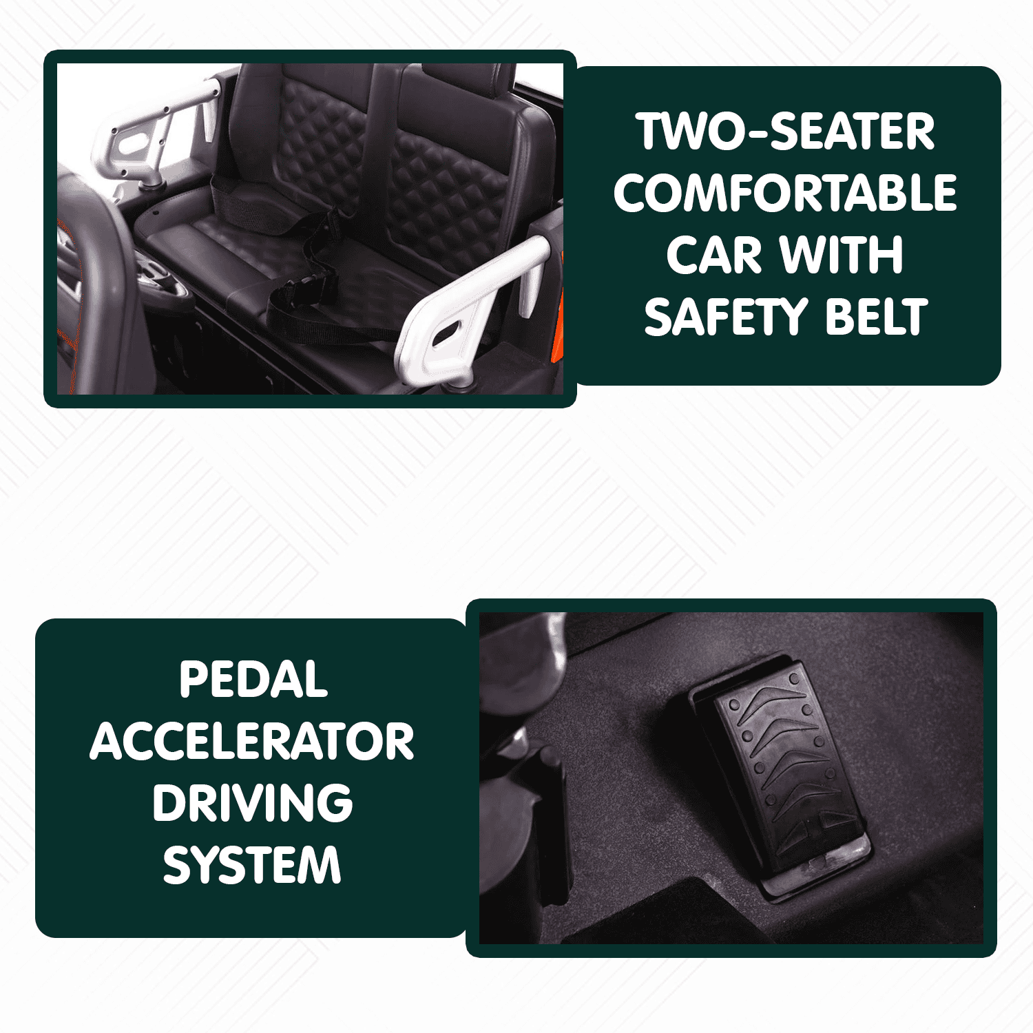 > FULL ENJOYMENT: when this car is fully charged, Double motor ride on Car, your baby can continuously play it for 40 minutes which makes sure that your baby can abundantly enjoy it.