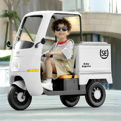 Baby Moo Smart Ride on 3-Wheeler Electric Van - 12V Rechargeable Battery-Powered Transport Vehicle with Music & Lights - White
