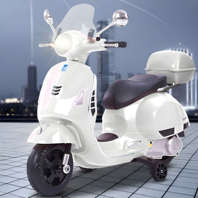 Baby Moo Vespa Rechargeable Battery Operated Bike With Music & Light With Remote - White