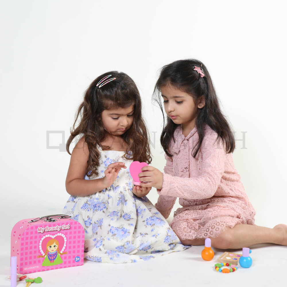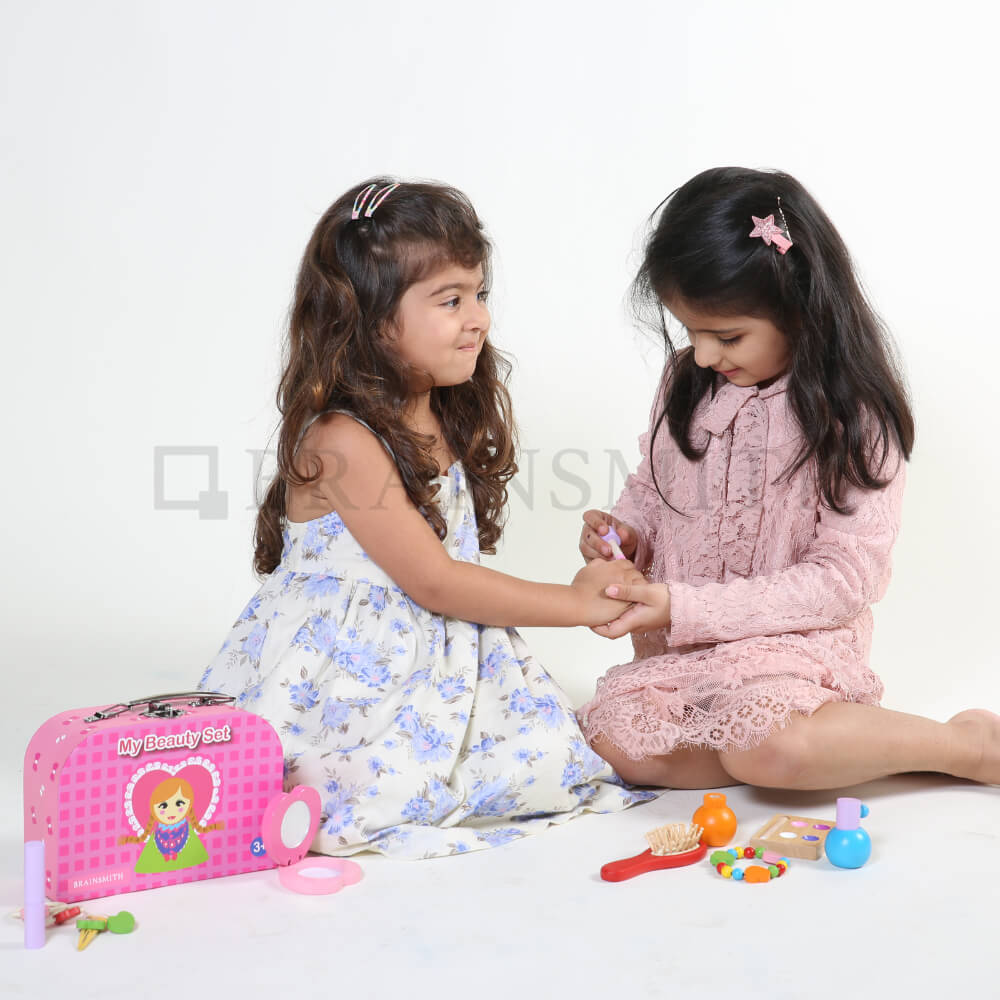 Playing dress up never goes away and is every child's most favorite activity. With their own beauty set, children can play with friends and family and invite infinite imagination and creativity, along with lots of smiles. It is a portable beauty set for kids with compact storage.
