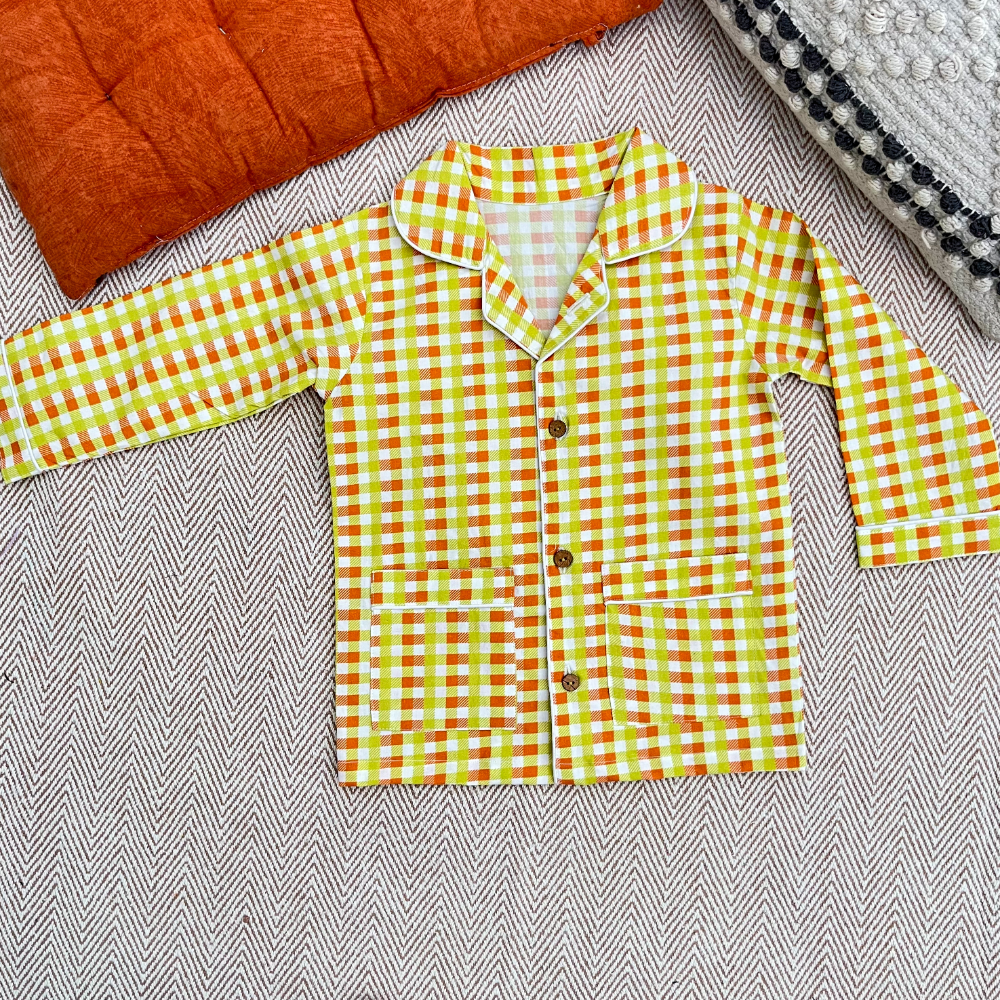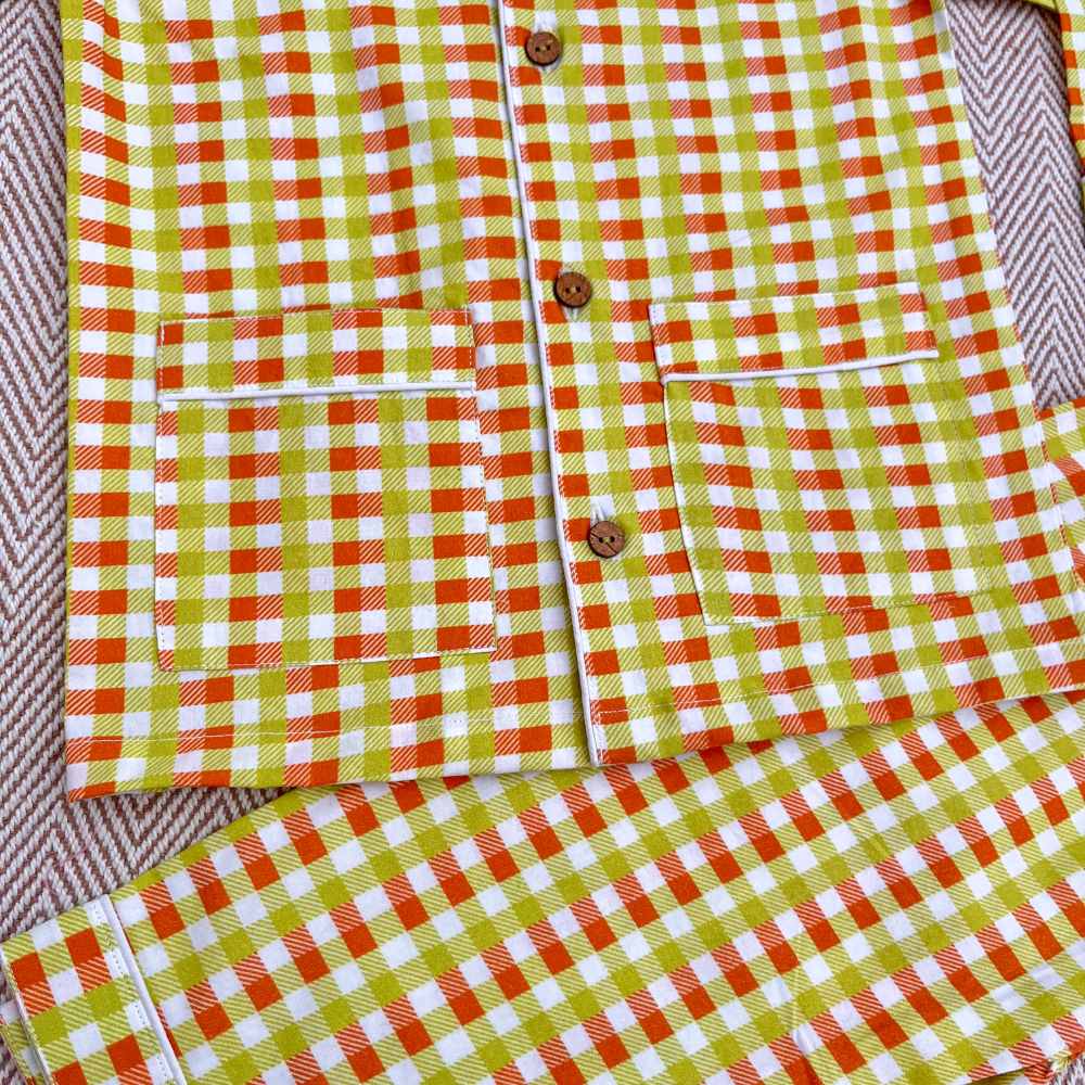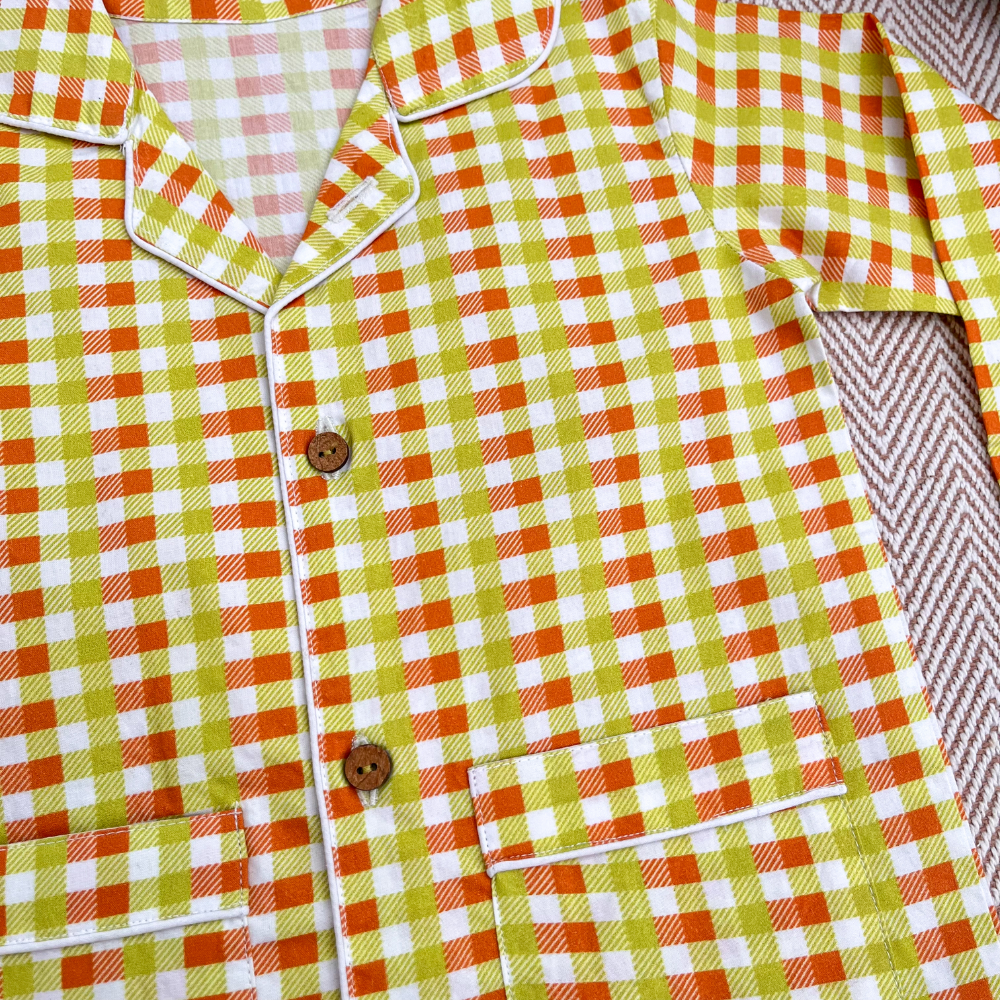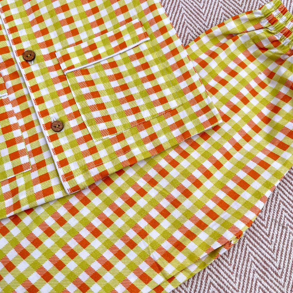 Bhaakur Organic Cotton Orange Green Checks Night Suit