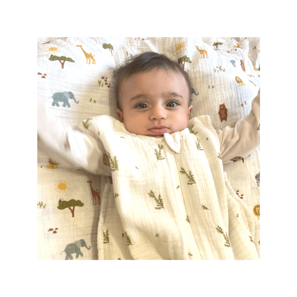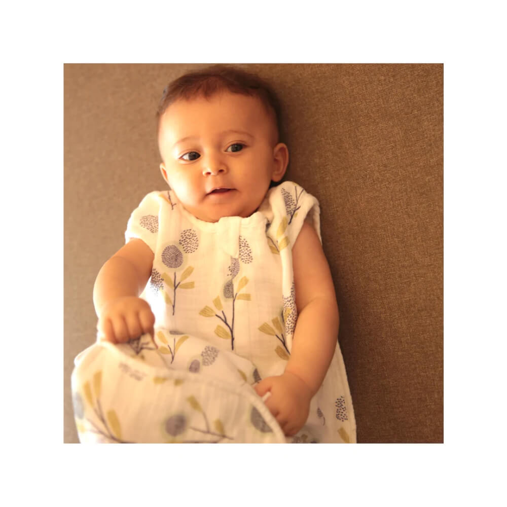 Breathable and lightweight, our Sleep Bags are perfect for a good night's sleep. They are made of the highest quality muslin, a fabric known for its temperature moderation and preventing overheating for babies. They are also sized comfortably big to ensure they last as long as your little one needs them.