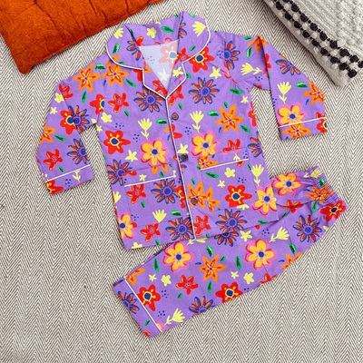 Bhaakur Organic Cotton Purple Floral Night Suit