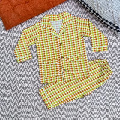 Bhaakur Organic Cotton Orange Green Checks Night Suit