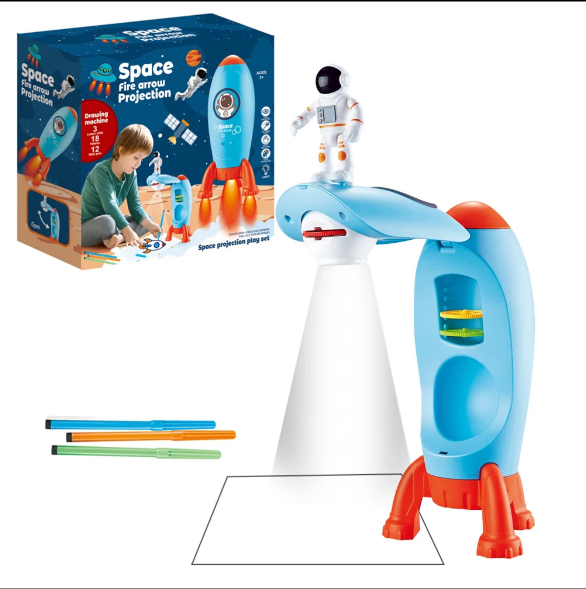 Introducing the Space Fire Arrow Projector - the perfect tool for your tot's imagination! This projector produces accurate and high-quality drawings of space and fire scenes, igniting creativity and curiosity in your child. Witness their imagination come to life with the best drawings from this projector.