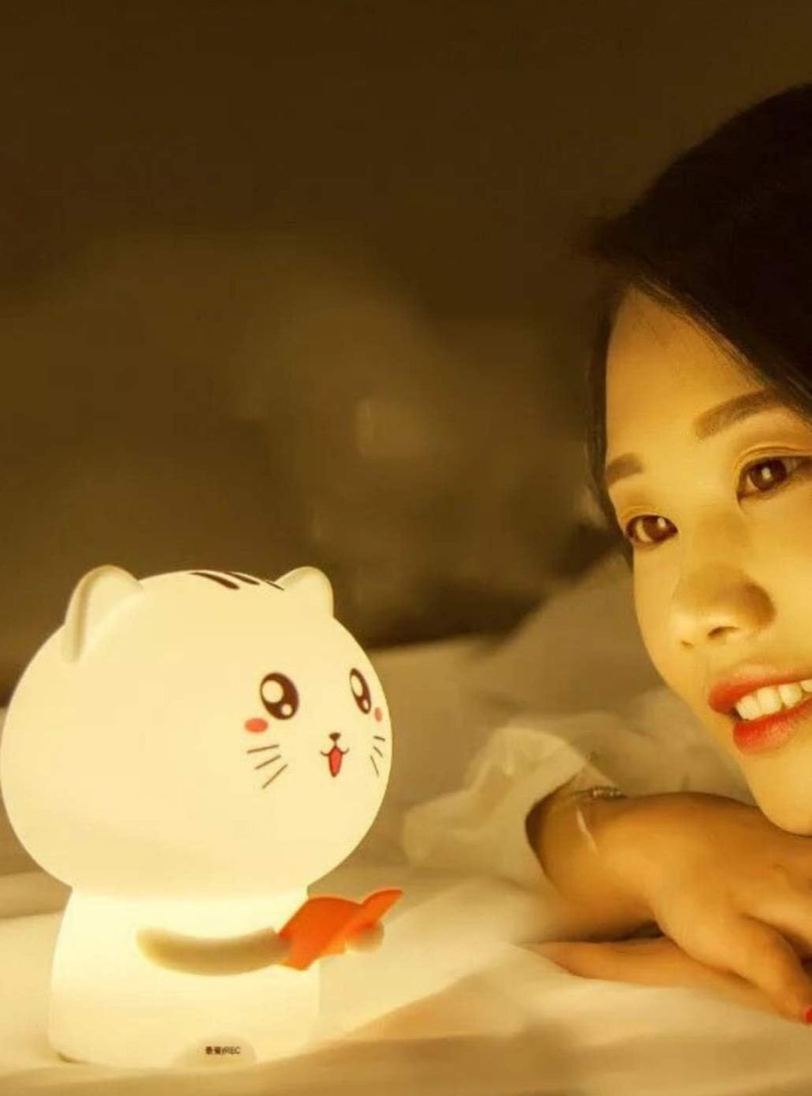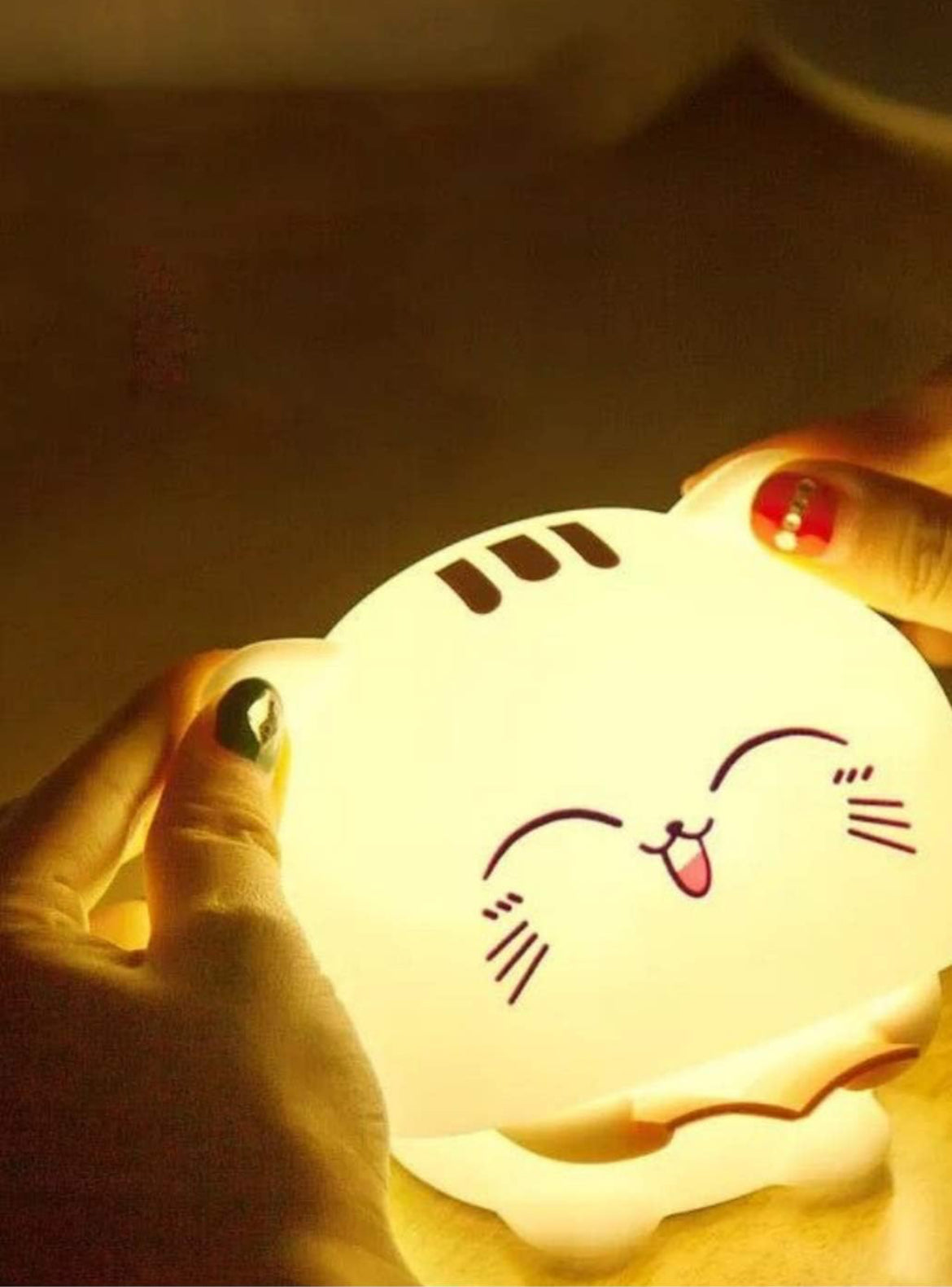 This high-quality night lamp is made of premium silicone and features a cute cat design. It provides a soft and comforting light that creates a peaceful atmosphere for a good night's sleep. Enjoy its charming and adorable presence in any room.