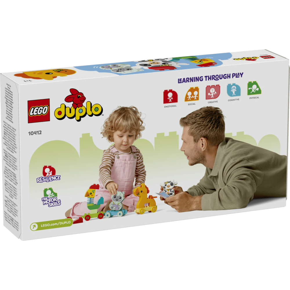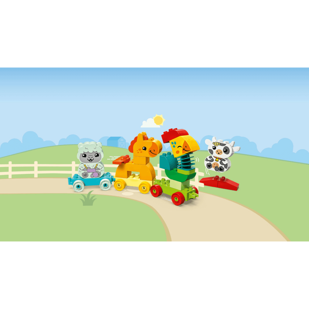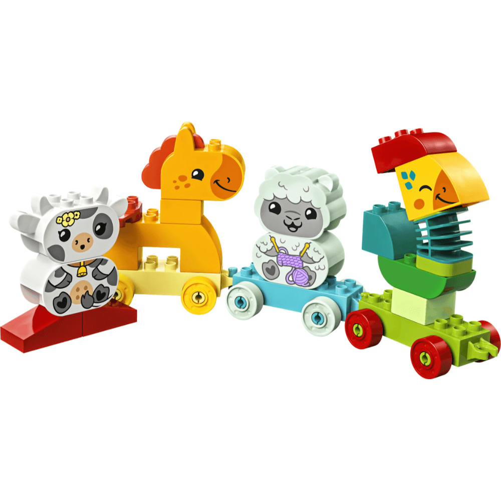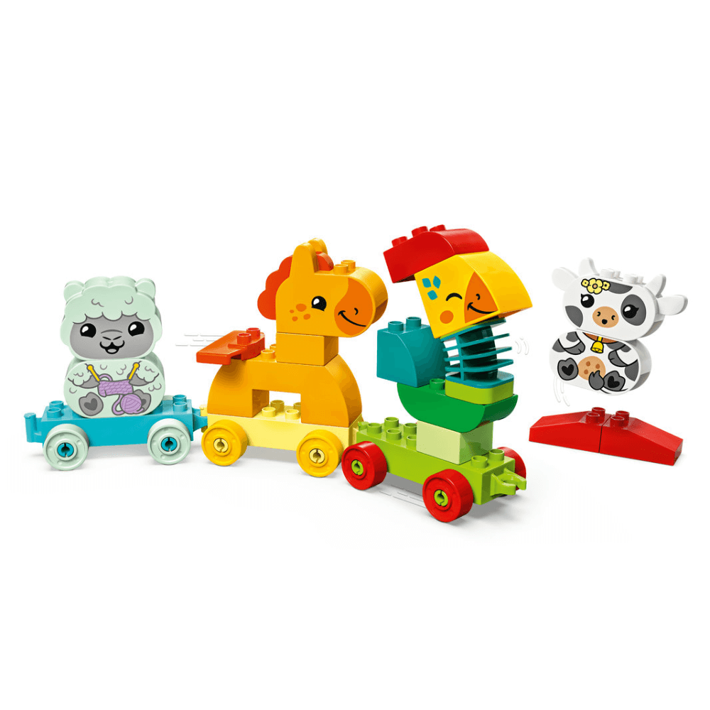 Big fun for little hands – This 19-piece animal train toy stands over 6.5 in. (17 cm) high and measures 16.5 in. (42 cm) long when fully assembled.