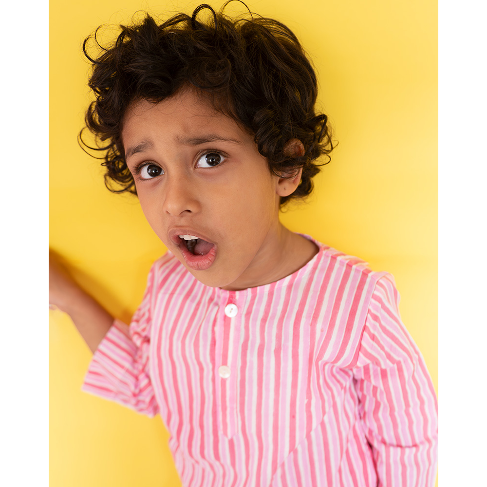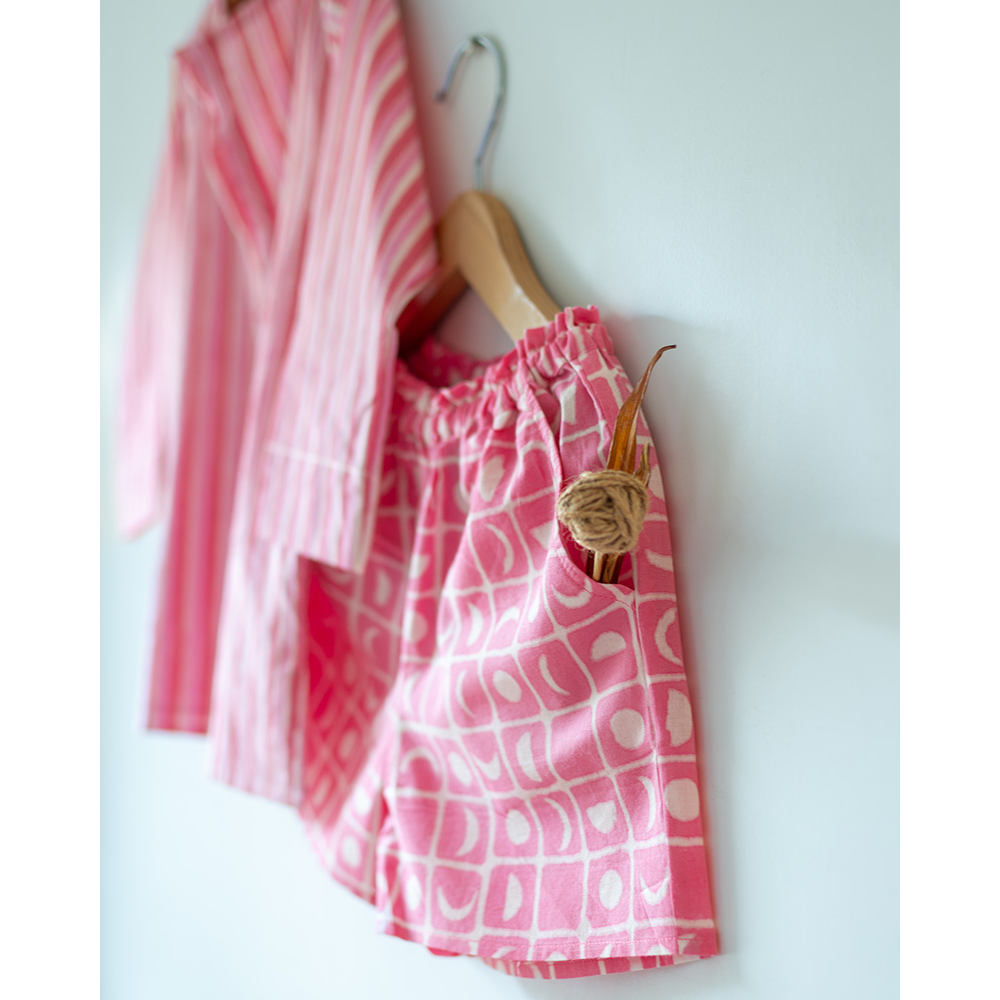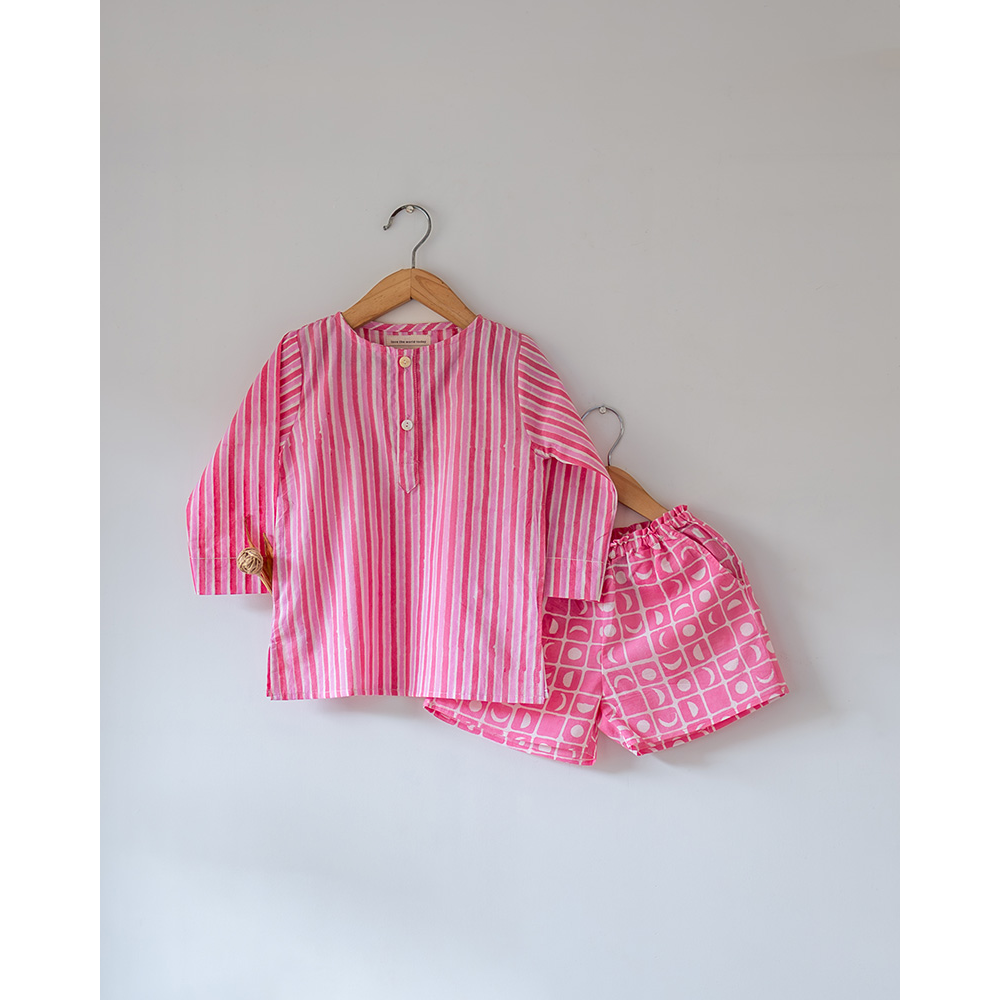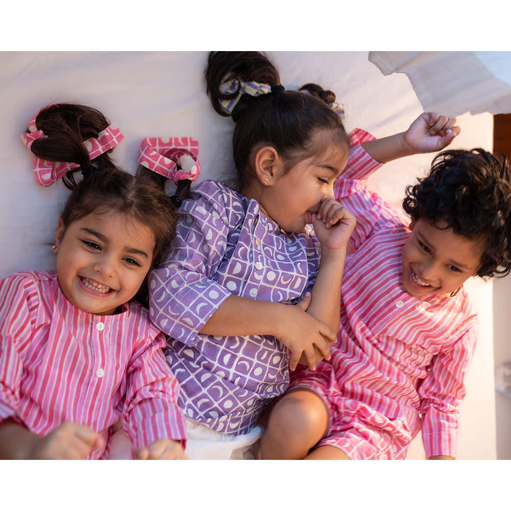 Have you even done holidays right, if not for one of those crazy sleepovers with cousins and pillow fights? Here's an easy breezy kurta and shorts co-ord set that can not only take your little one's sweaty play time but also convert into a soft cloud cover for sleep time!